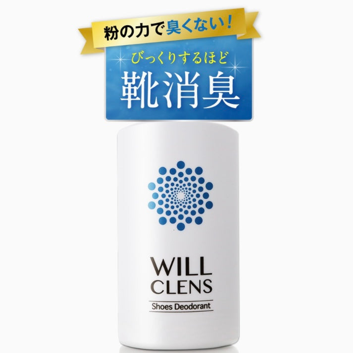 WILL CLENS(ウィルクレンズ)は、タルクフリーの天然成分100%使用した。靴にも足にも優しい本格派、靴消臭剤です。足の臭いの気にな靴に一振りするだけ!靴の消臭・足の消臭、効果をご実感いただけます。